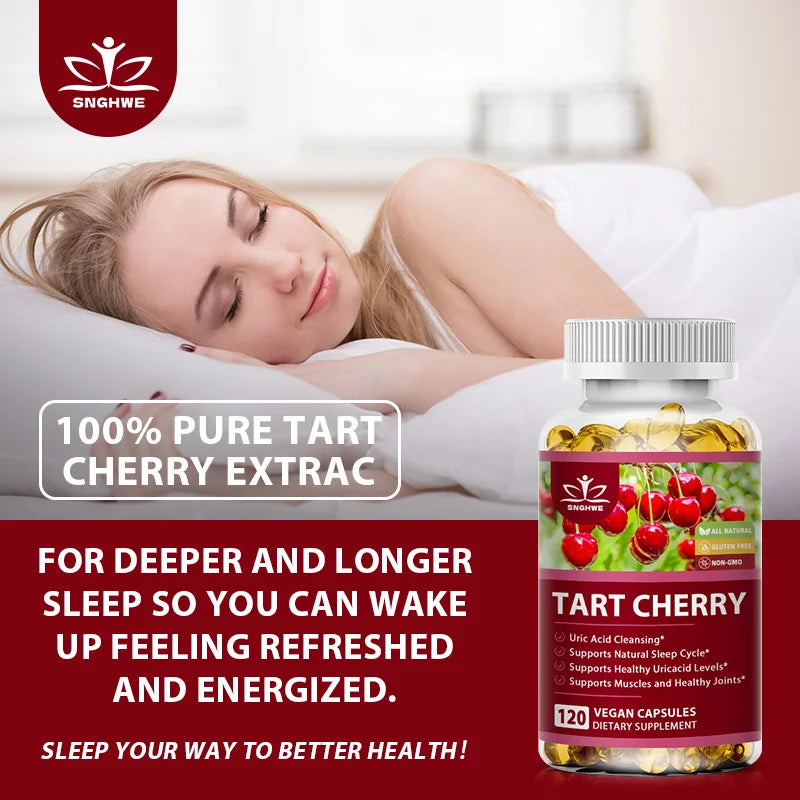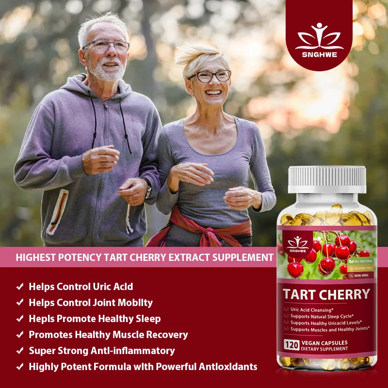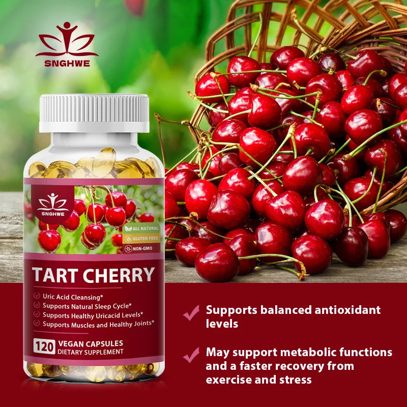 Experience the powerful benefits of tart cherries in a convenient capsule form. These antioxidant-rich capsules are packed with naturally occurring melatonin, polyphenols, and phytonutrients that support joint health, uric acid balance, restful sleep, and faster muscle recovery, all from one trusted, plant-powered supplement.